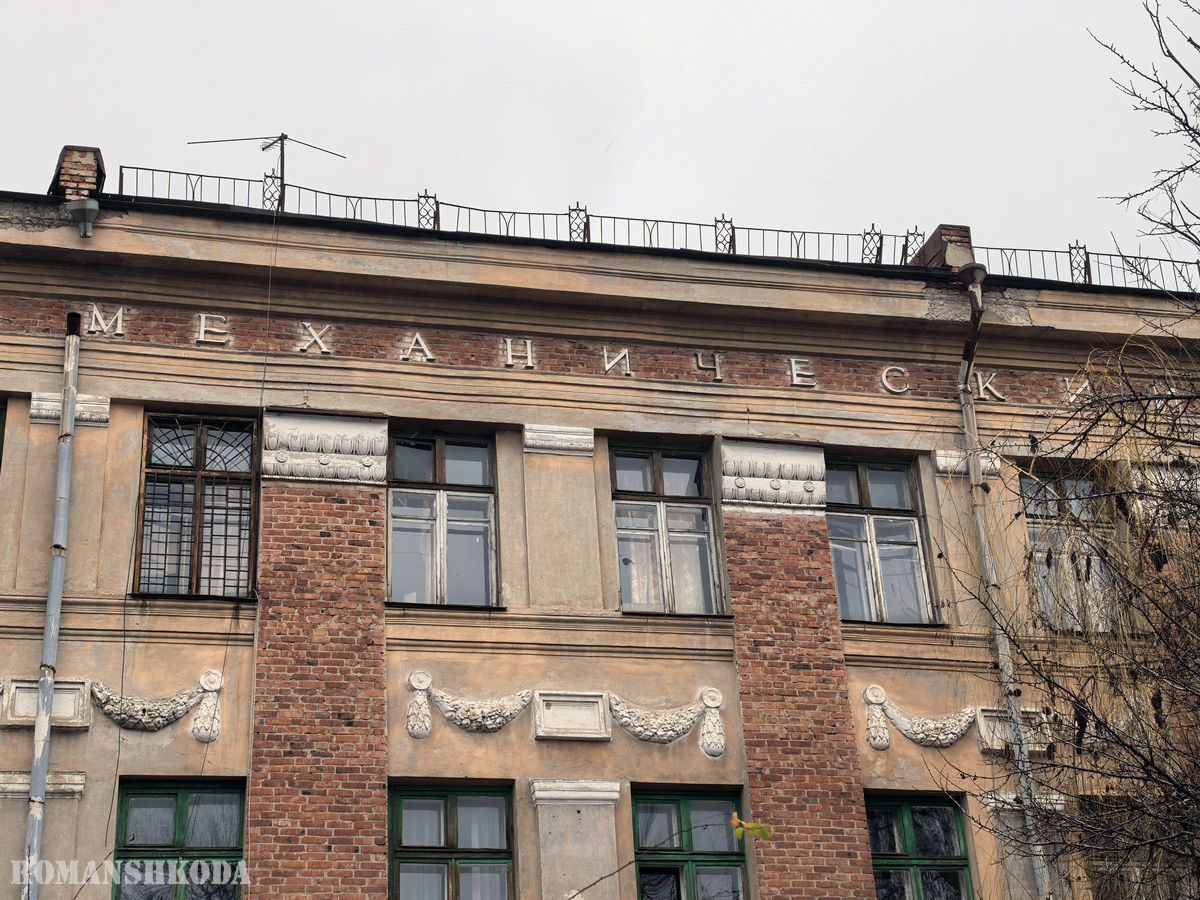 Однако после этого прошло тридцать советских лет и ещё сколько-то постсоветских, но никто ничего восстанавливать так и не стал, так что техникум большую часть своей истории оставался «Градским». Буквы, входящие в состав слов «механический техникум» даже подкрашивали, а «градский» не подкрашивали, и они не бросаются в глаза.