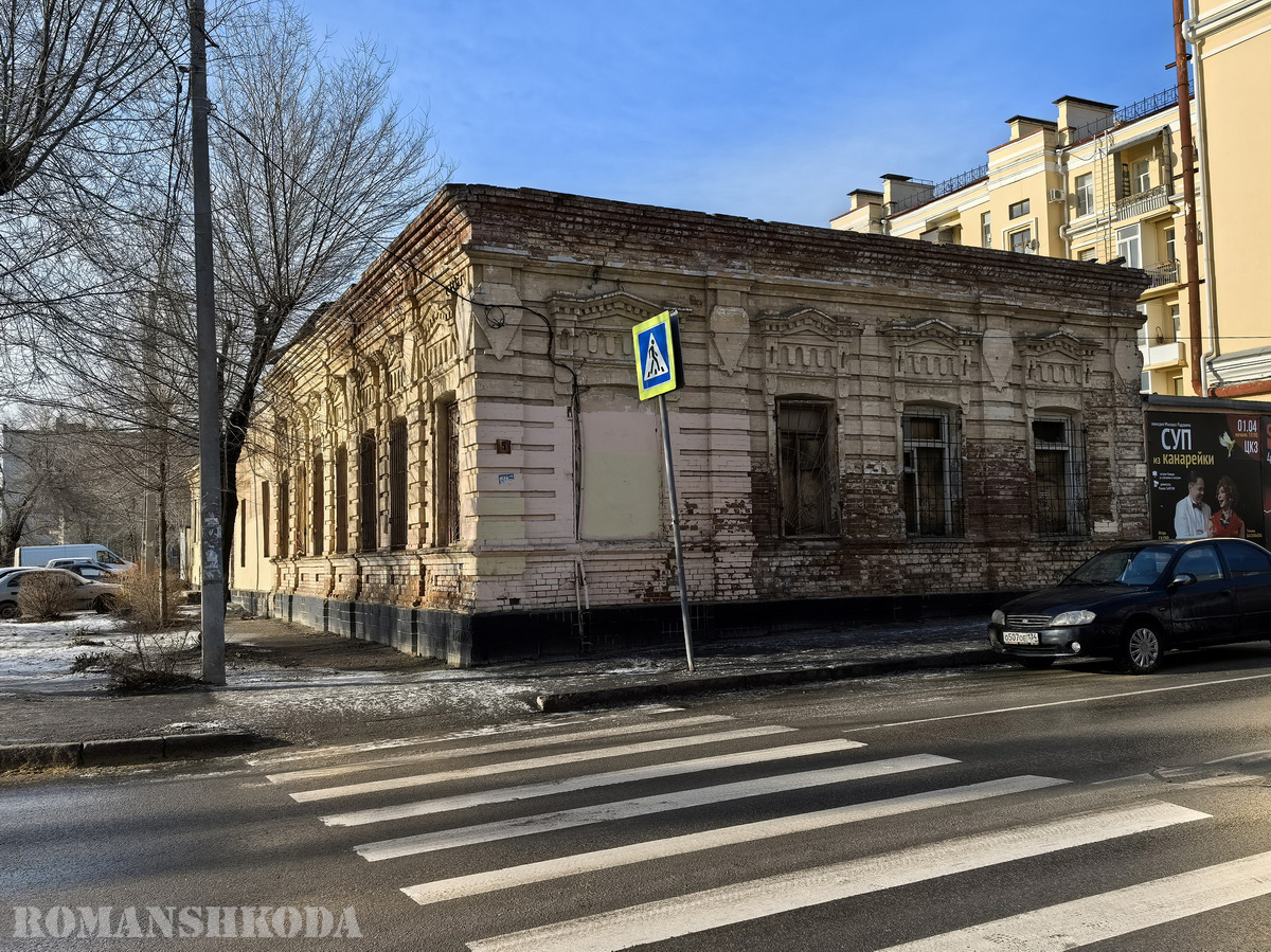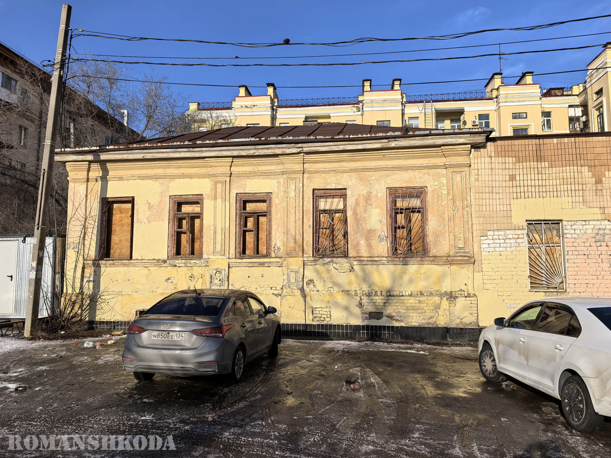о время Сталинградской битвы эти дома, а также расположенные с ними рядом, пострадали незначительно (судя по кадрам аэрофотосъёмки 1943 г. у них даже уцелели крыши). В позднесоветское время здесь располагалось Ворошиловское ГАИ (впоследствии ликвидированное). После съезда отсюда ГАИ здание несколько лет простояло заброшенным. 10 февраля 2014 года здесь случился пожар. С тех пор дом стоит примерно в одном и том же состоянии.